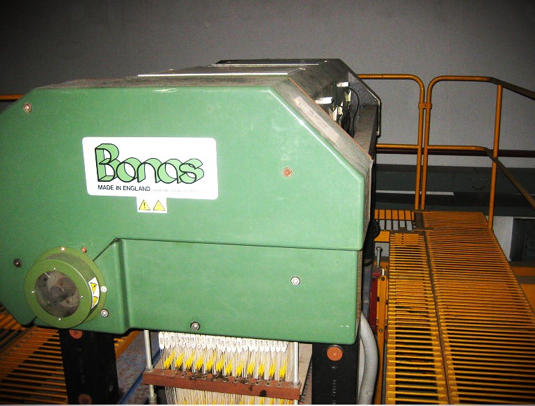 Bonas Machine Company Ltd. launched the first electronic Jacquard at ITMA Milan in 1983. Although the machines were small initially, modern technology has enabled Jacquard machine capacity to increase significantly, and single end warp control can extend to more than 19,200 warp ends. This eliminates the need for repeats and symmetrical designs and allows almost infinite versatility. The computer-controlled machines significantly reduce the downtime associated with changing punched paper designs, thus allowing smaller batch sizes.